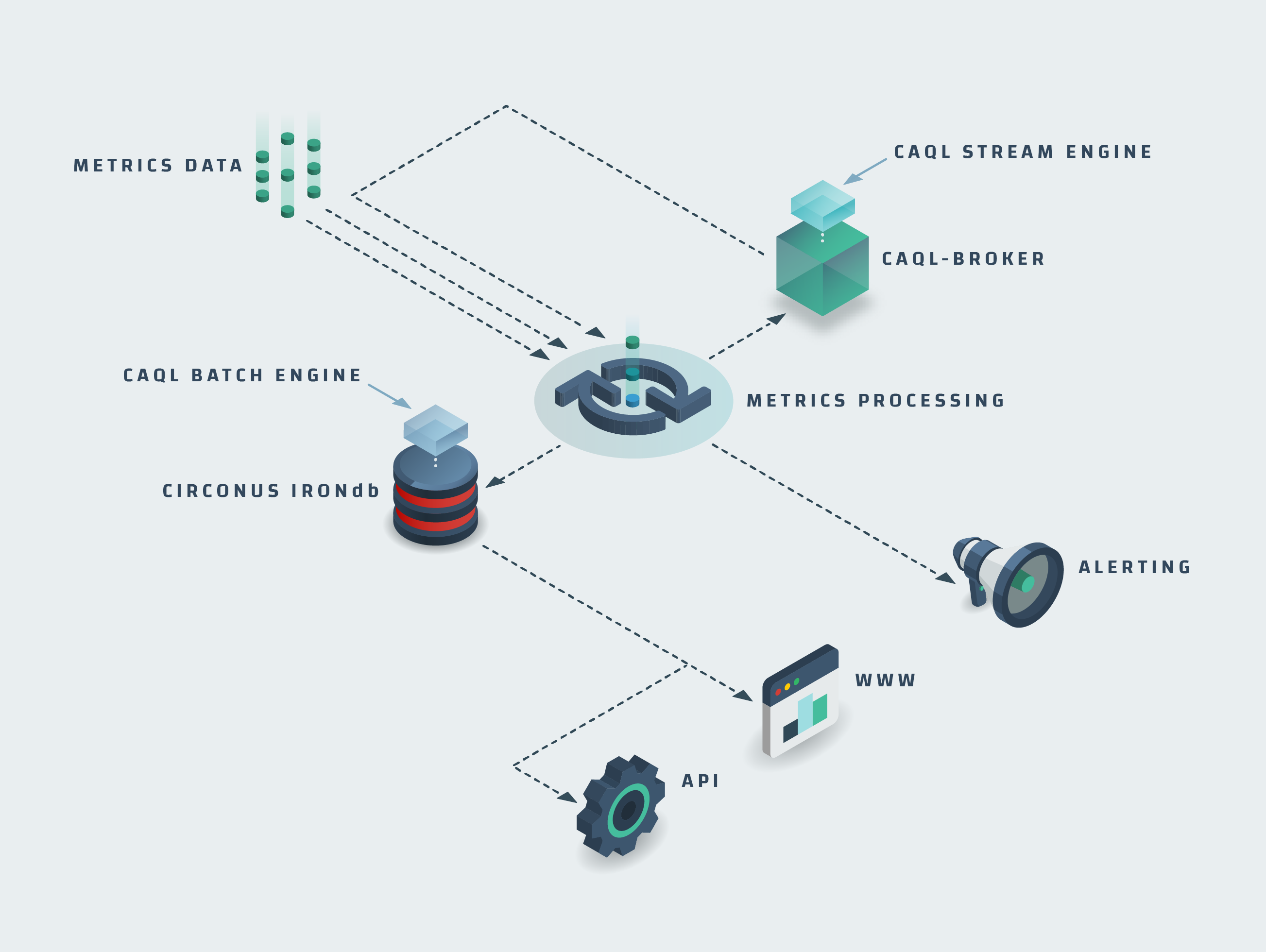 CAQL on IRONdb uses a map-reduce style data fetching framework that allows federation of certain computations out to the cluster. This framework is directly exposed as /fetch-endpoint in IRONdb. Prime examples include the following processing patterns: